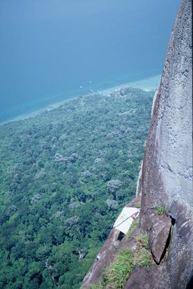 Tioman Island, Malaysia. In late August, 2000 Nick Tomlin and Scotty Nelson spent 8 days on Pulau Tioman, an island off the eastern coast of Malaysia, making the first ascent of the impressive Bukit Nekek Semekut, one of two peaks on the island’s southern tip known collectively as the “Dragon’s Horns”. Our route, Waking Dream (V 5.9 A2) climbs the prominent 400 meter south face of the jungle spire, and required 4 nights on the wall in portaledges. To the best of our knowledge this was the first ascent of the mountain.