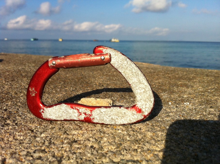 Bukit Seminyak is the only tropical maritime bolted granite area that we are aware of. From our experience, the crag is exposed to persistemt maritime breezes with regular mist – which suggests a possibility of chloride build-ups. We witnessed intense corosion of carbon steel bolts as well as massive exfoliation on aluminum carabiners, and suspect there is a possibility of Stress Corosion Cracking here.